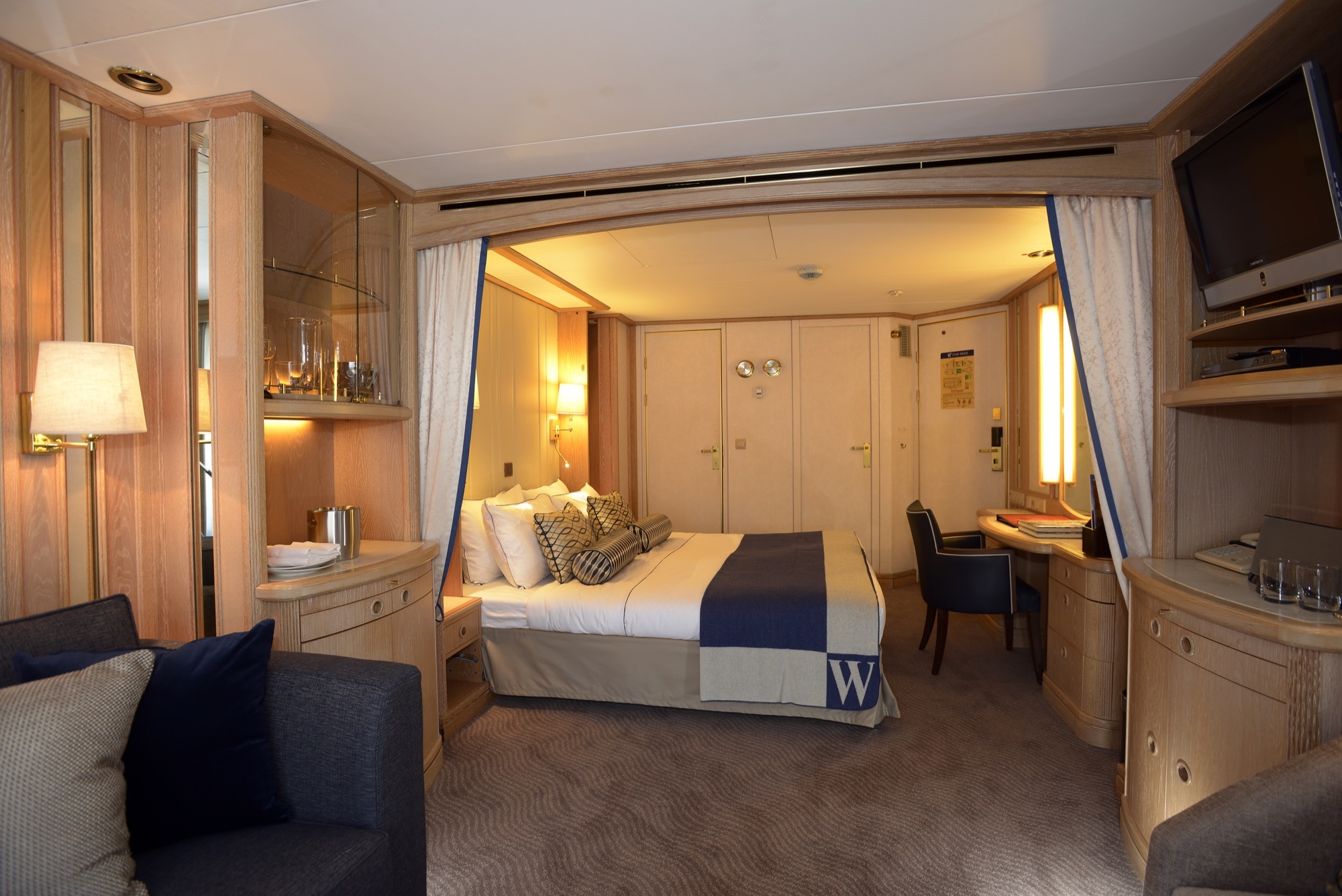 With an expansive 220 square feet, the Owner's Suite gives you everything offered in a stateroom, plus lots more, including a beautiful sitting area and separate in-room dining space.